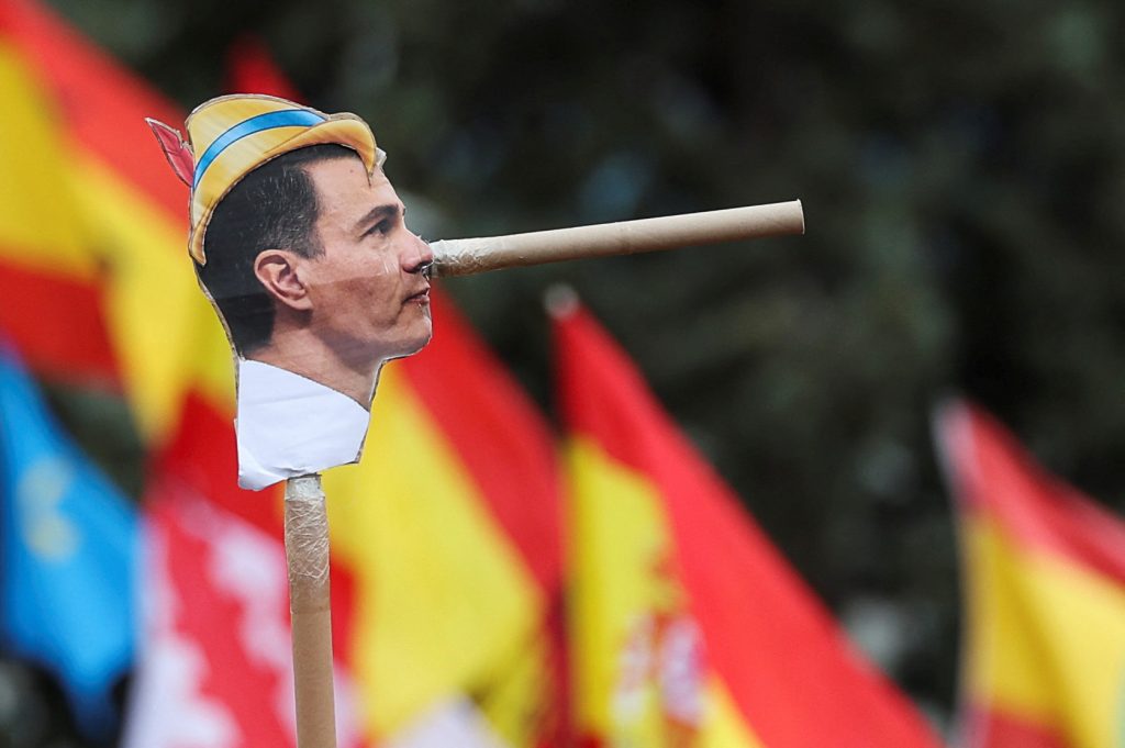 Εικόνα του Πέδρο Σάντσεθ ως Πινόκιο στις τελευταίες κινητοποιήσεις κατά της συμφωνίας του με τους Καταλανούς αυτονομιστές