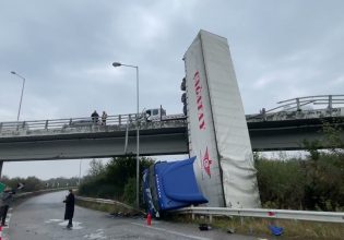 Συγκεκριμένα ένα φορτηγό, υπό αδιευκρίνιστες συνθήκες, προσέκρουσε στις μεταλλικές μπάρες και έπεσε από τη γέφυρα. Ευτυχώς ο οδηγός του τραυματίστηκε ελαφρά.