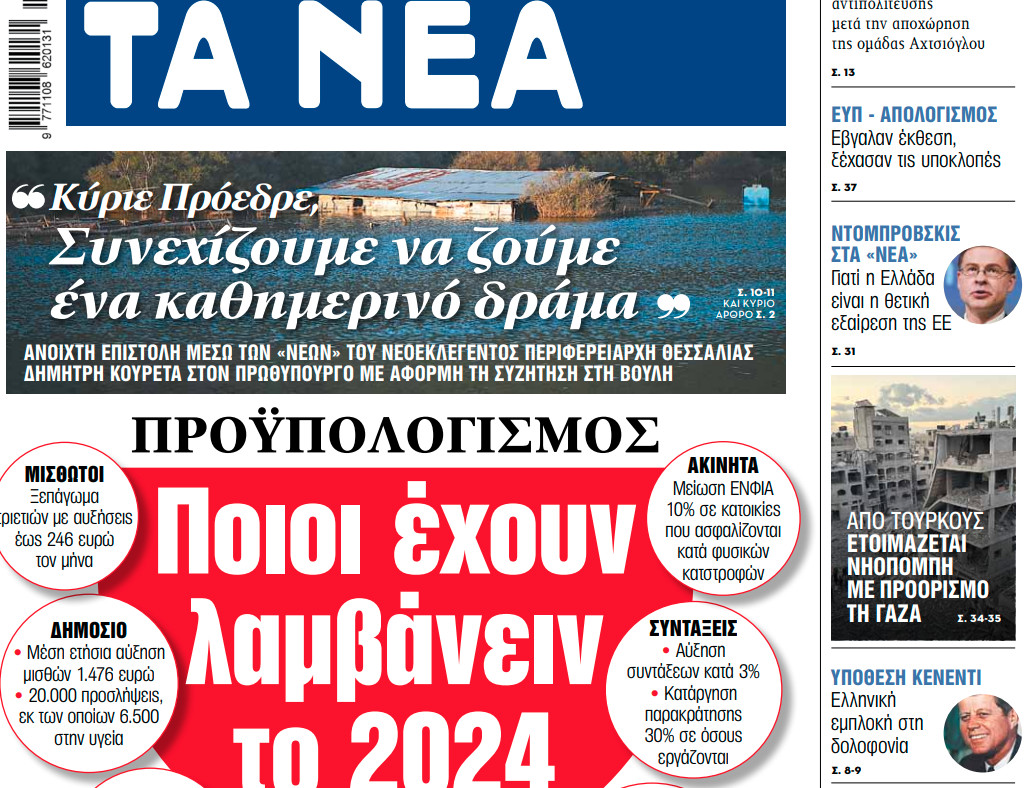 Στα «ΝΕΑ» της Τετάρτης: Ποιοι έχουν λαμβάνειν το 2024