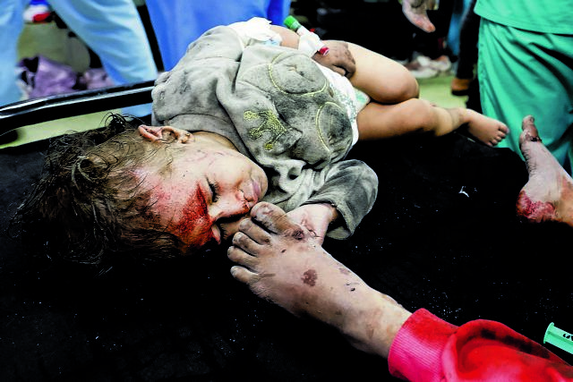 Παιδάκια τραυματισμένα από ισραηλινά πυρά δέχονται τις πρώτες βοήθειες στο νοσοκομείο Νάσερ, στο Χαν Γιουνίς στη νότια Λωρίδα της Γάζας, εν μέσω της συνεχιζόμενης σύγκρουσης μεταξύ του Ισραήλ και της παλαιστινιακής ισλαμιστικής οργάνωσης Χαμάς