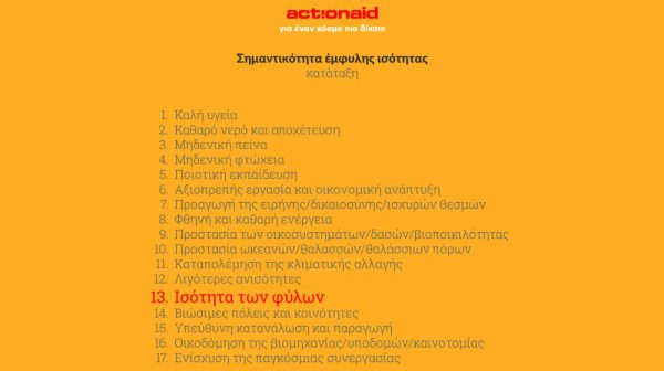 3. Τα ζητήματα έμφυλης ισότητας κατατάσσονται στην 5η από το τέλος θέση όσον αφορά τη σπουδαιότητα