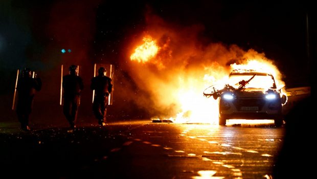 Εκατοντάδες διαδηλωτές συγκεντρώθηκαν κοντά στο σημείο της επίθεσης με το μαχαίρι στο Δουβλίνο, φωνάζοντας συνθήματα κατά των μεταναστών και ανάβοντας φωτιές, ενώ πυρπόλησαν περιπολικό και οχήματα.
