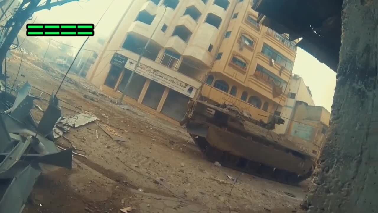 Ενώ είναι εμφανείς οι δυσκολίες που αντιμετωπίζουν τα τεθωρακισμένα των Ισραηλινών σε συνθήκες αντάρτικου πόλεων και από το παρακάτω βίντεο.