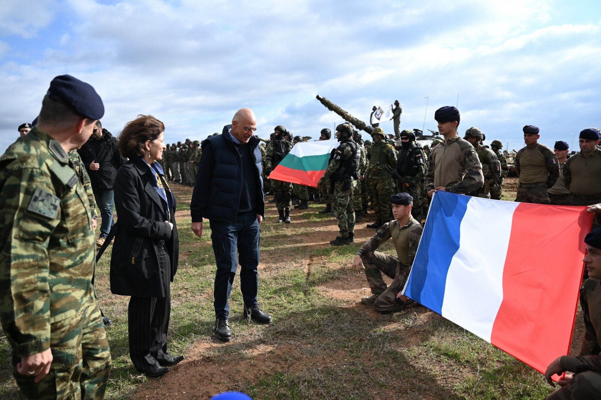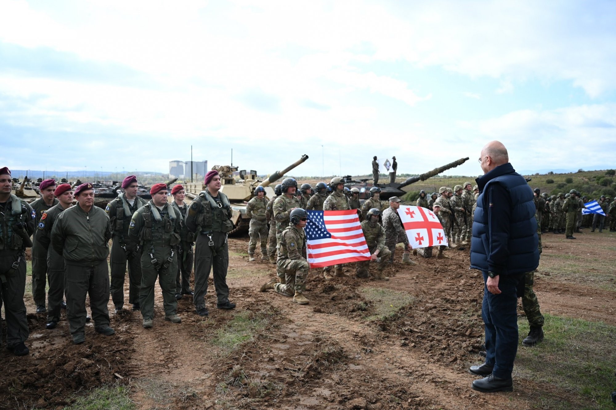 Ο Νίκος Δένδιας επιθεωρεί τις χερσαίες δυνάμεις από τις ΗΠΑ και την Γεωργία που συμμετείχαν στην άσκηση