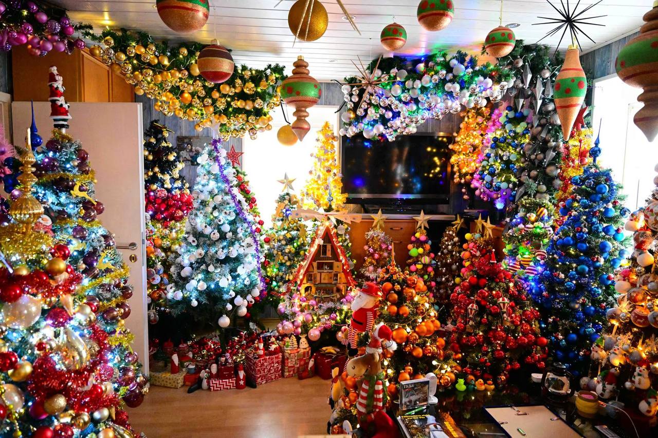 Η γυναίκα τοποθέτησε το μεγαλύτερο στολίδι στο κέντρο, με μικρότερα σε κάθε πλευρά, εντάσσοντας λευκές, ασημένιες και χρυσές αποχρώσεις.