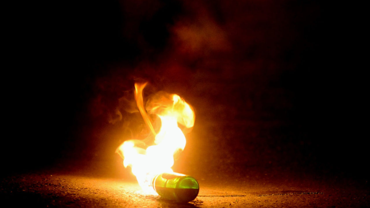 Αρχικά προκάλεσαν ζημιές σε τζαμαρία φούρνου που βρίσκεται επί της Λεωφόρου Εθνικής Αντιστάσεως 139 και στη συνέχεια πέταξαν βόμβες μολότοφ εναντίον σουπερμάρκετ, στον αριθμό 143 της ίδιας Λεωφόρου, χωρίς ευτυχώς να προκληθεί φωτιά, παρά μόνο μαύρισμα στην πρόσοψη του καταστήματος.