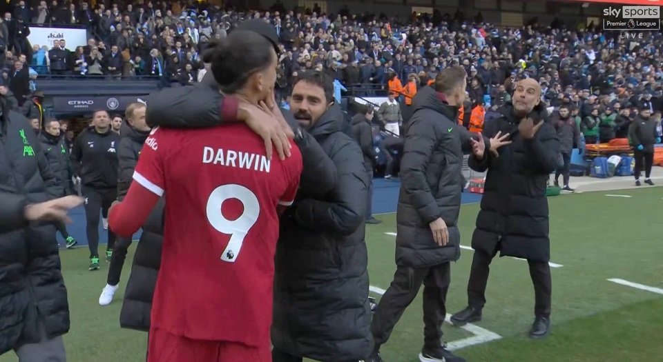 Πεπ Γκουαρντιόλα και Ντάργουιν Νούνιες τα είπαν σε… έντονο ύφος και παρόλο που το θέμα της συζήτησης δεν έχει αποκαλυφθεί, η ένταση που επικράτησε στον αγωνιστικό χώρο ήταν εμφανής.