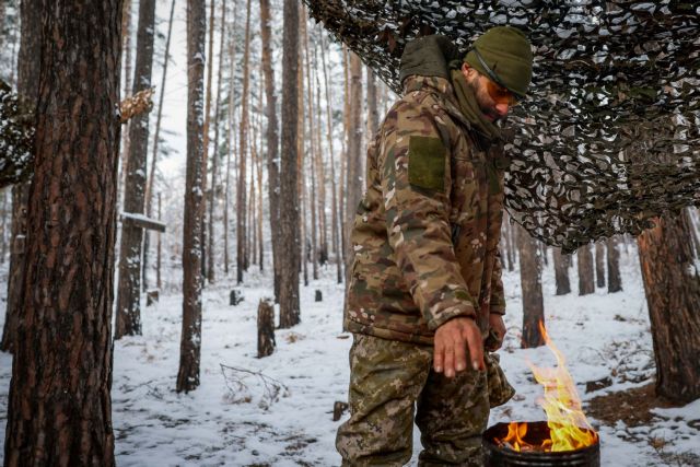 Κάπου 400 κοινότητες δεν είχαν ηλεκτρικό ρεύμα στην Ουκρανία χθες Κυριακή εξαιτίας των «εξαιρετικά δύσκολων» μετεωρολογικών συνθηκών, δήλωσε ο πρόεδρος της χώρας Βολοντίμιρ Ζελένσκι, καθώς το ουκρανικό δίκτυο ηλεκτροδότησης απειλείται από νέα εκστρατεία ρωσικών βομβαρδισμών (στη φωτογραφία του Reuters/Alina Smutko, επάνω, ουκρανός στρατιώτης ζεσταίνει τα χέρια του σε μια αυτοσχέδια εστία κοντά στην πρώτη γραμμή του μετώπου στην περιοχή του Ντονέτσκ).