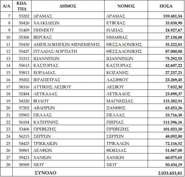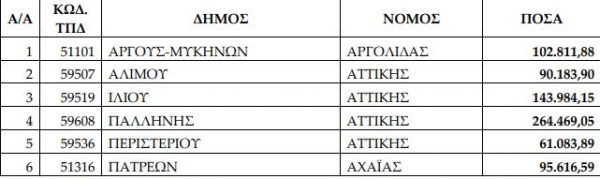 Τα ανωτέρω ποσά θα καταβληθούν στους δικαιούχους Δήμους, με Χρηματική Εντολή του Υπουργείου Εσωτερικών προς το Ταμείο Παρακαταθηκών και Δανείων.