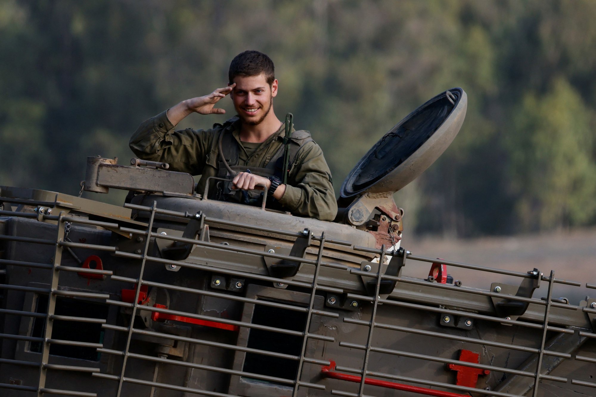 Ένας Ισραηλινός στρατιώτης επιβαίνει σε ένα τεθωρακισμένο όχημα μεταφοράς προσωπικο