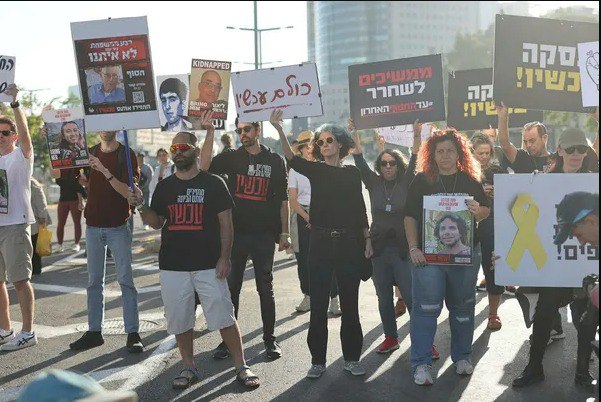 Οι διαδηλωτές απαιτούν από την ισραηλινή κυβέρνηση να επαναλάβει τις συνομιλίες που μπορεί να οδηγήσουν σε μια συνολική συμφωνία με τη Χαμάς και την απελευθέρωση όλων των υπόλοιπων ομήρων που κρατούνται στη Γάζα.