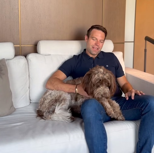 Ο ίδιος είχε αποκαλύψει σε συνέντευξη ότι έχει το σκύλο του μαζί με το σύντροφό του τα τελευταία 3,5 χρόνια. Πρόκειται για ένα σκυλάκι μεσαίου μεγέθους, με γαλαζοπράσινα μάτια και πολύχρωμο τρίχωμα, όπου πρωταγωνιστούν οι μπεζ και καφέ αποχρώσεις.