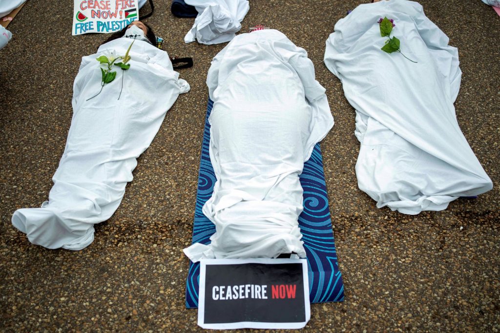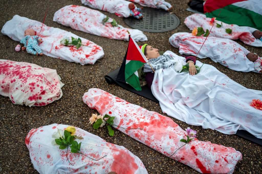 Διαδηλωτές συγκεντρώθηκαν έξω από τον Λευκό Οίκο στην Ουάσινγκτον απαιτώντας να υπάρξει κατάπαυση του πυρός στη Γάζα.