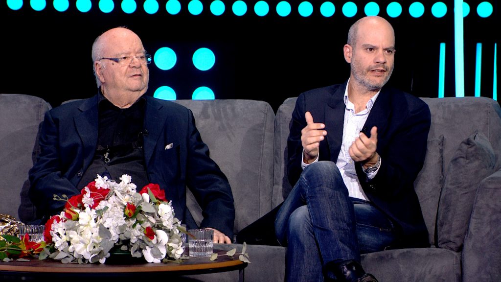 Συγκινητική στιγμή της βραδιάς η εξομολόγηση του δημοσιογράφου Αντώνη Κατσαρού, μέσω Skype από τη Μαδρίτη, για τα «μαθήματα ζωής» που παίρνει καθημερινά από τον πατέρα του.