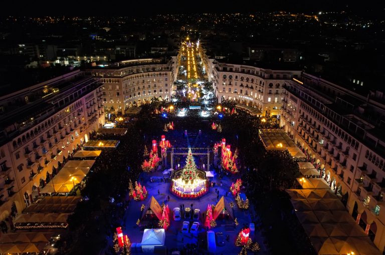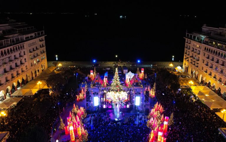Φωταγωγήθηκε το Χριστουγεννιάτικο έλατο στη Θεσσαλονίκη με 100.000 λαμπιόνια