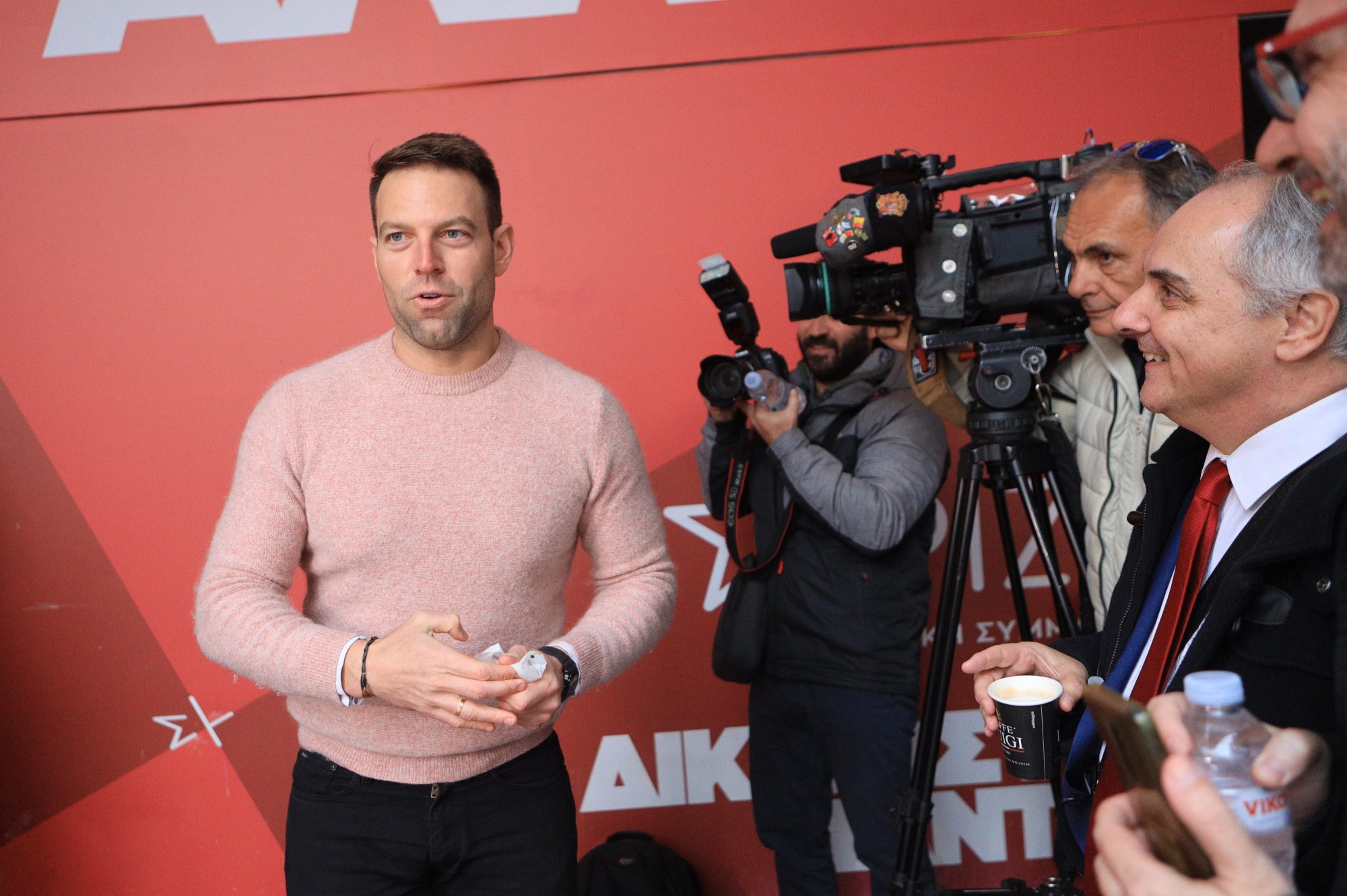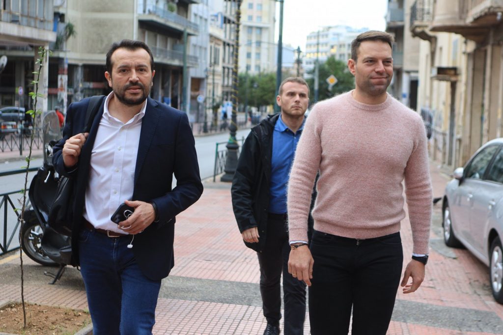 Ο Στέφανος Κασσελάκης και ο Νίκος Παππάς προσερχόμενοι στην Πολιτική Γραμματεία