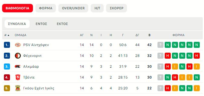 Όλα αυτά τρεις αγωνιστικές πριν το φινάλε του πρώτου γύρου, με την Αϊντχόφεν να είναι σίγουρα πρωταθλήτρια χειμώνα, ότι και εάν συμβεί στα παιχνίδια που απομένουν κόντρα σε Χέρενφεν (7/12, εντός), Αλκμααρ (17/12, εκτός) και Εξελσιόρ (13/1, εντός).