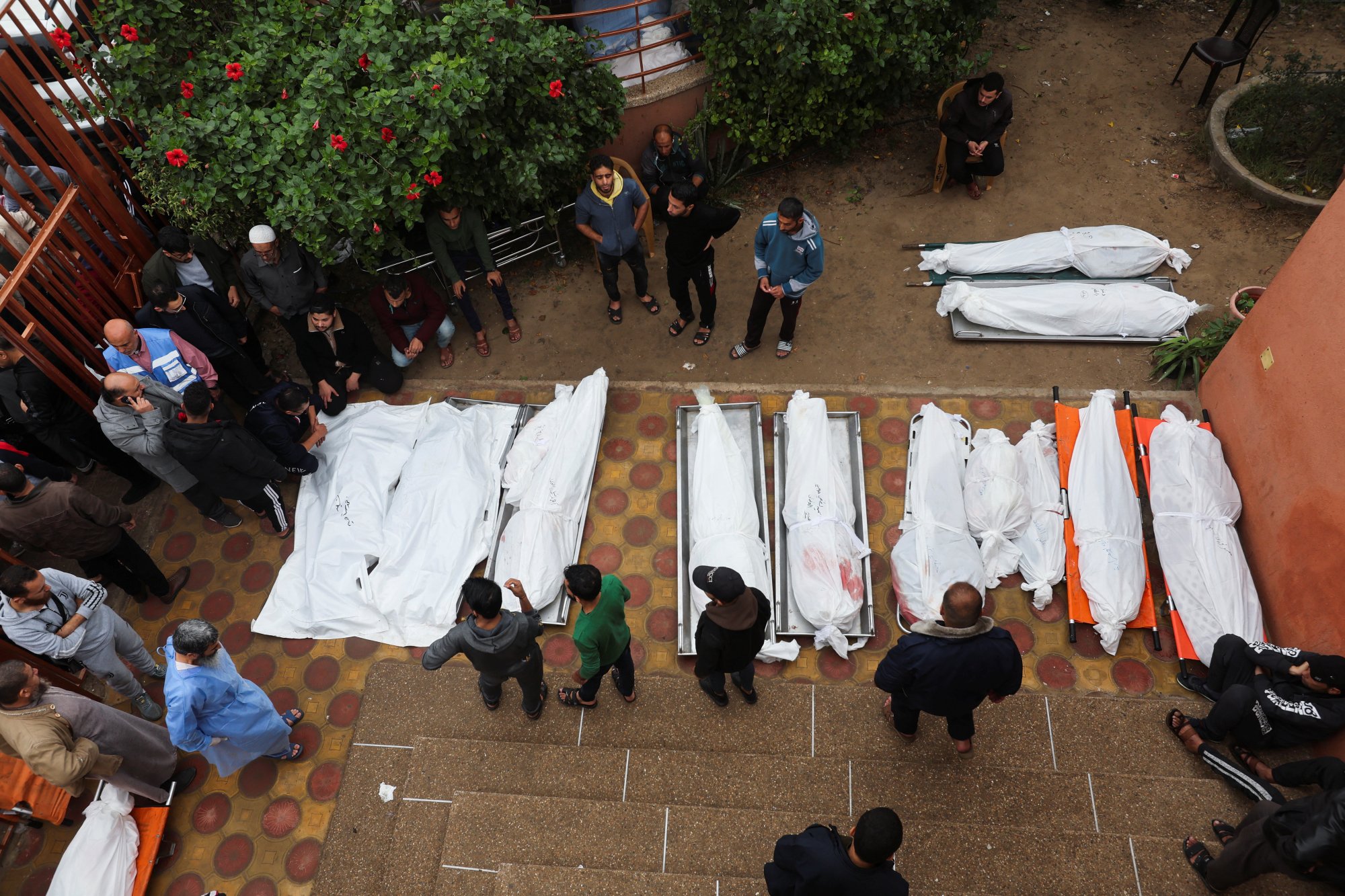 Ο υπουργός Εξωτερικών του Ισραήλ χαρακτήρισε «κίνδυνο για την παγκόσμια ειρήνη» τη «θητεία» του Γενικού Γραμματέα του Οργανισμού Ηνωμένων Εθνών, λίγες ώρες αφού ο Αντόνιο Γκουτέρες κίνησε σπάνια διαδικασία στο Συμβούλιο Ασφαλείας για τον πόλεμο στη Λωρίδα της Γάζας (στη φωτογραφία του Reuters, επάνω, πτώματα Παλαιστινίων, παιδιών ανάμεσά τους, που σκοτώθηκαν από τους ισραηλινούς βομβαρδισμούς σχολείου στη Χαν Γιουνίς, στη νότια Λωρίδα της Γάζας).
