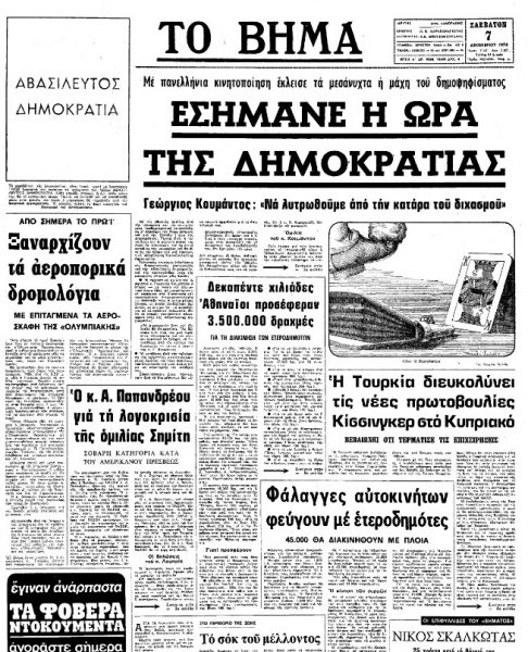 Το δημοψήφισμα που διενεργήθηκε—με αδιάβλητο κατά κοινή ομολογία τρόπο— έλυσε διά παντός το πολιτειακό ζήτημα που ταλάνιζε την Ελλάδα επί ολόκληρες δεκαετίες και είχε διχάσει κατ’ επανάληψιν τους Έλληνες. Μέσα σε συνθήκες πρωτοφανούς για τον ελληνικό πολιτικό βίο ελευθερίας, η συντριπτική πλειοψηφία των Ελληνίδων και των Ελλήνων τάχθηκε υπέρ της αβασίλευτης δημοκρατίας.