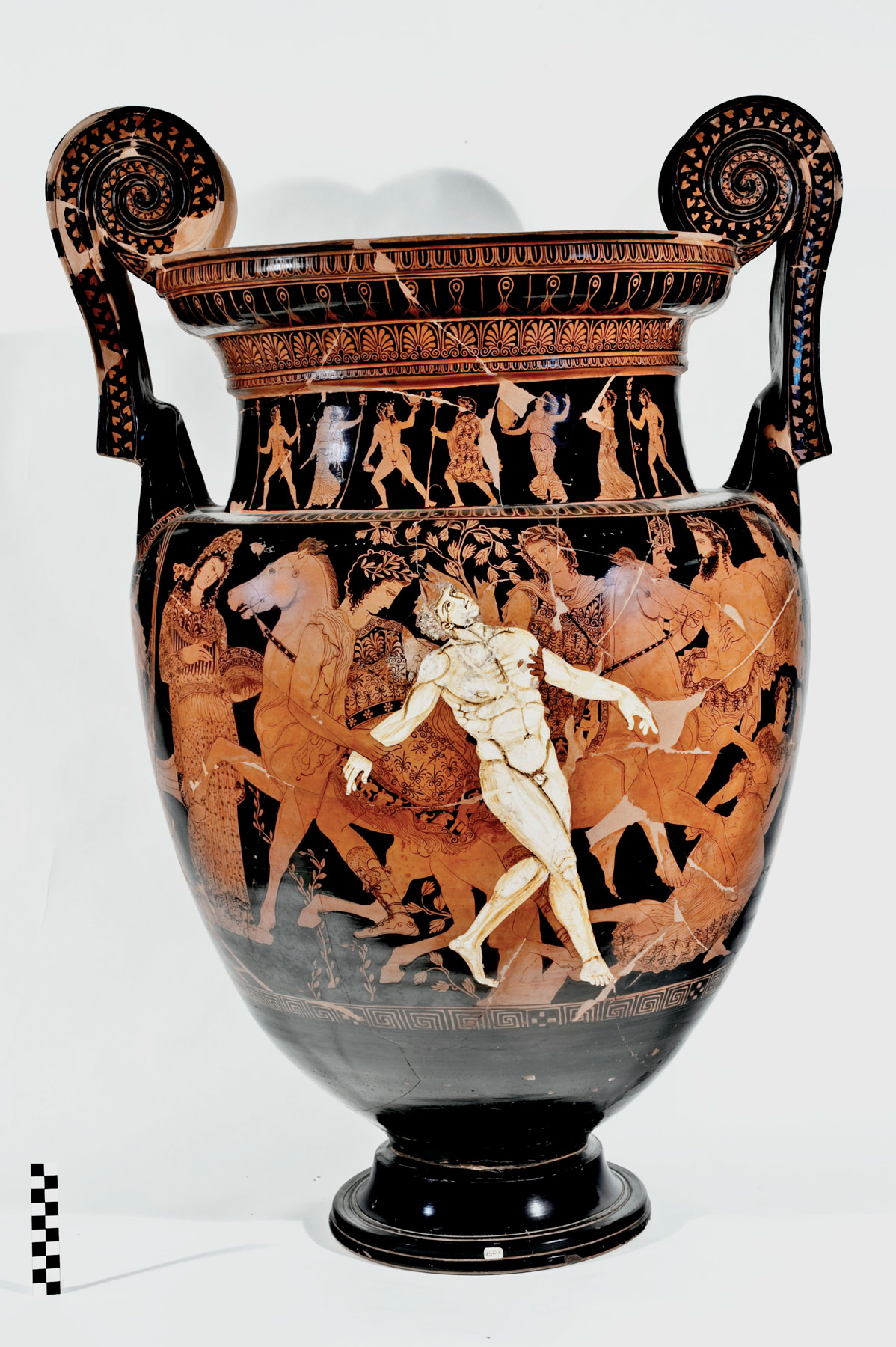 Μεταξύ των εκθεμάτων είναι και τα οκτώ αγγεία από το Βρετανικό Μουσείο, όπως η ερυθρόμορφη υδρία του Μειδία, με 27 μορφές, τα ονόματά τους και την υπογραφή του κεραμέα ΜΕΙΔΙΑΣ ΕΠΙΟΗΣΕΝ στον «ώμο» του αγγείου (420-410 π.Χ.), το οποίο για πρώτη φορά «ταξιδεύει» εκτός Βρετανικού Μουσείου.