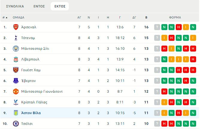 Εκτός έδρας η ομάδα του Ουνάι Εμερι έχει απολογισμό 3/2/3 σε οκτώ αναμετρήσεις, με 10/15 γκολ και 11 βαθμούς στο ενεργητικό της.