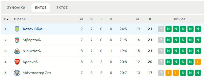 Η Αστον Βίλα πραγματοποιεί σπουδαίες εμφανίσεις στη φετινή σεζόν και βρίσκεται στην 3η θέση της βαθμολογίας – Η νίκη απέναντι στη Σίτι και το αποψινό ντέρμπι με την Αρσεναλ.