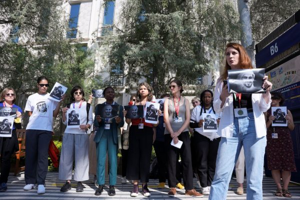 Οι υπερασπιστές των ανθρωπίνων δικαιωμάτων διαδηλώνουν σε ένδειξη αλληλεγγύης με τους πολιτικούς κρατούμενους στην Αίγυπτο και τα Ηνωμένα Αραβικά Εμιράτα στο περιθώριο της Διάσκεψης των Ηνωμένων Εθνών για την Κλιματική Αλλαγή COP28 στο Ντουμπάι, Ηνωμένα Αραβικά Εμιράτα, 9 Δεκεμβρίου 2023 (REUTERS/Stringer).