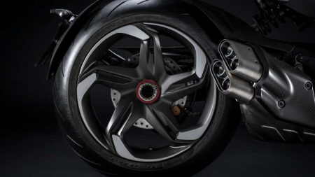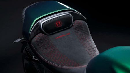 Στο ίδιο ακριβώς σκεπτικό υπακούει και ο σχεδιασμός των τροχών που υιοθετούν αντίστοιχο μοτίβο με το τετράτροχο GΤ των Βρετανών. Η σέλα φέρει το έμβλημα της Bentley ενώ οι κόκκινες ραφές είναι κάτι που συναντά κανείς και στο εσωτερικό της Batur. Στις λεπτομέρειες που έχουν σχεδιαστεί επίσης με την Batur κατά νου, συγκαταλέγονται η διπλή απόληξη της εξάτμισης καθώς και τα φτερά των τροχών, το κάλυμμα των φώτων και του ψυγείου που κατασκευάζονται από το ανθρακόνημα.