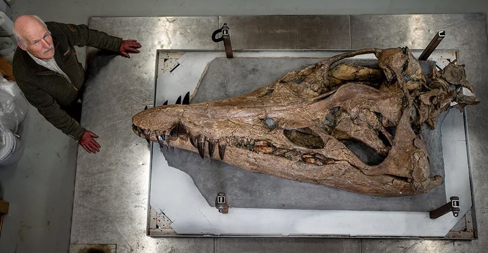 Ένα γιγάντιο απολίθωμα που ανακαλύφθηκε σε κατακόρυφο γκρεμό της νότιας ακτής της Βρετανίας είναι το πιο καλοδιατηρημένο κρανίο πλειόσαυρου που έχει ανακαλυφθεί ποτέ, ανακοίνωσαν οι ερευνητές που ανέσυραν το προϊστορικό τέρας.