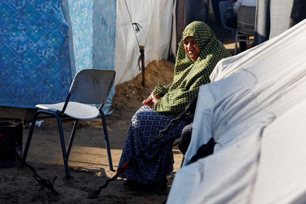 Εκτοπισμένη Παλαιστίνια σε καταυλισμό με σκηνές στη Χαν Γιουνίς.