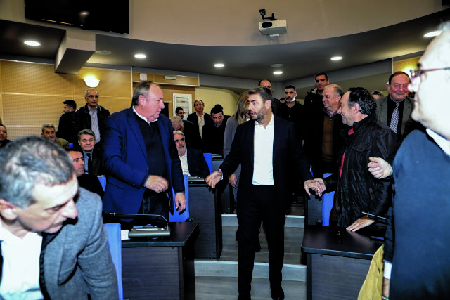 Ο πρόεδρος του ΠΑΣΟΚ Νίκος Ανδρουλάκης χθες στη Λάρισα όπου είχε συνάντηση με τον περιφερειάρχη Δημήτρη Κουρέτα και τους παραγωγικούς φορείς της πόλης με τους οποίους συζήτησε το σχέδιο ανασυγκρότησης της Θεσσαλίας