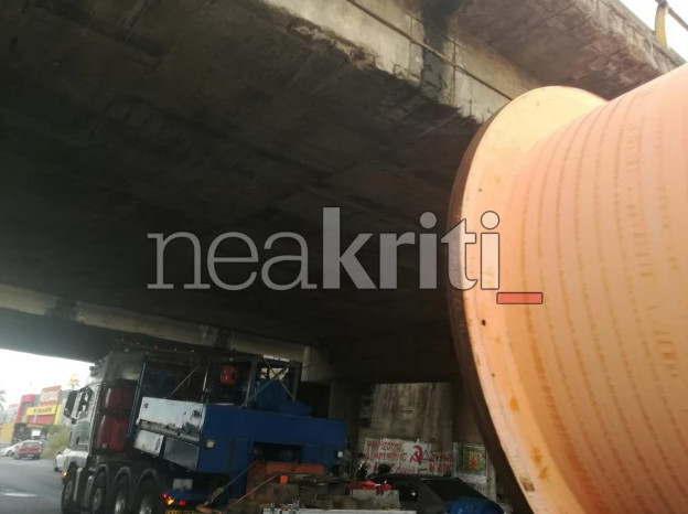 Κυκλοφοριακό «έμφραγμα» επικρατεί στη λεωφόρο Καζαντζίδη καθώς μηχάνημα μεγάλου δημόσιου έργου κόλλησε κάτω από τη γέφυρα του ΒΟΑΚ.