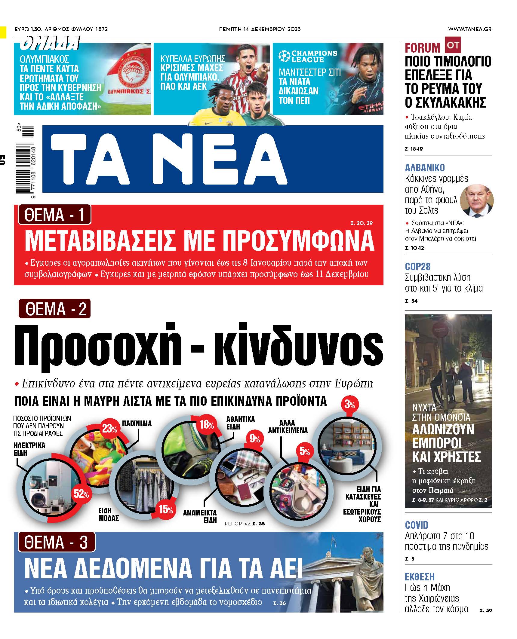 Στα «ΝΕΑ» της Πέμπτης: Προσοχή – κίνδυνος
