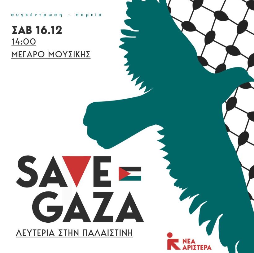 14:00 – Μέγαρο Μουσικής#Γάζα #SaveGaza #FreePalestine #CeaseFireNow pic.twitter.com/Kfv2xR7G9K— Νέα Αριστερά (@NewLeftGR) December 15, 2023