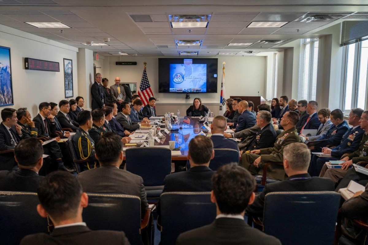 Η Νότια Κορέα και οι Ηνωμένες Πολιτείες σκοπεύουν μέχρι τα μέσα του επόμενου έτους να καταρτίσουν από κοινού κατευθυντήριες γραμμές για τη στρατηγική αντιμετώπισης της πυρηνικής απειλής από τη Βόρεια Κορέα, μεταδίδει το πρακτορείο ειδήσεων Yonhap (στη φωτογραφία από το Yonhap, επάνω, στιγμιότυπο από τη δεύτερη σύνοδο της Πυρηνικής Συμβουλευτικής Ομάδας Νότιας Κορέας – ΗΠΑ, στο αμερικανικό Πεντάγωνο).