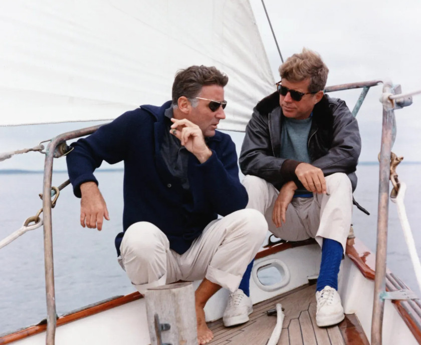 Εκτός προεδρικού μεγάρου ο JFK, που λάτρευε το νερό και την ιστιοπλοΐα, λέγοντας πυκνά συχνά ότι «έχουμε αλάτι στο αίμα μας, στον ιδρώτα μας και στα δάκρυά μας, είμαστε δεμένοι με τον ωκεανό» φορούσε λεπτά πουλόβερ, γκρι φούτερ, ναυτικές ζακέτες και φυσικά πόλο μπλουζάκια σε όλες τις αποχρώσεις του μπλε και όχι μόνο.