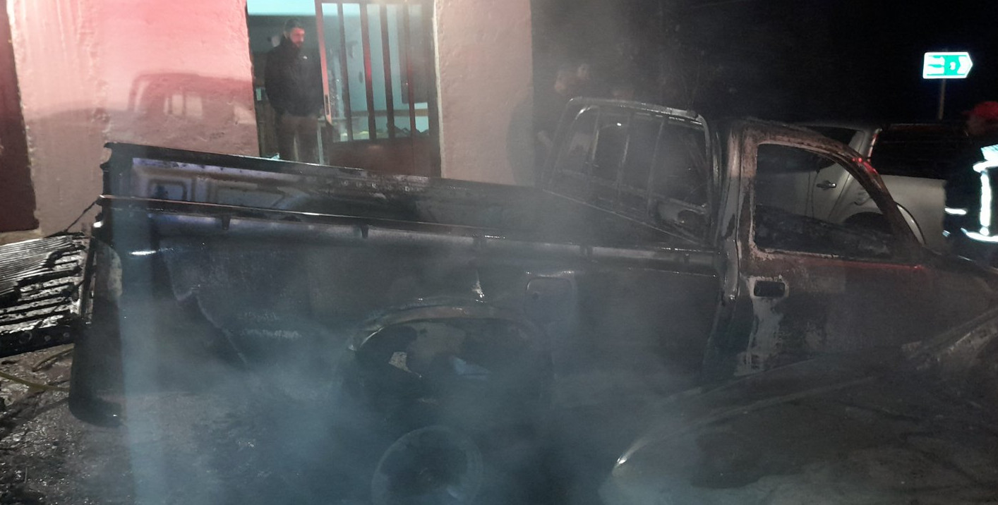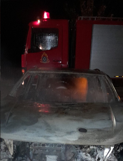 Το ένα από τα δύο οχήματα που κάηκαν ολοσχερώς στο Ρέθυμνο (Πηγή: Cretapost)