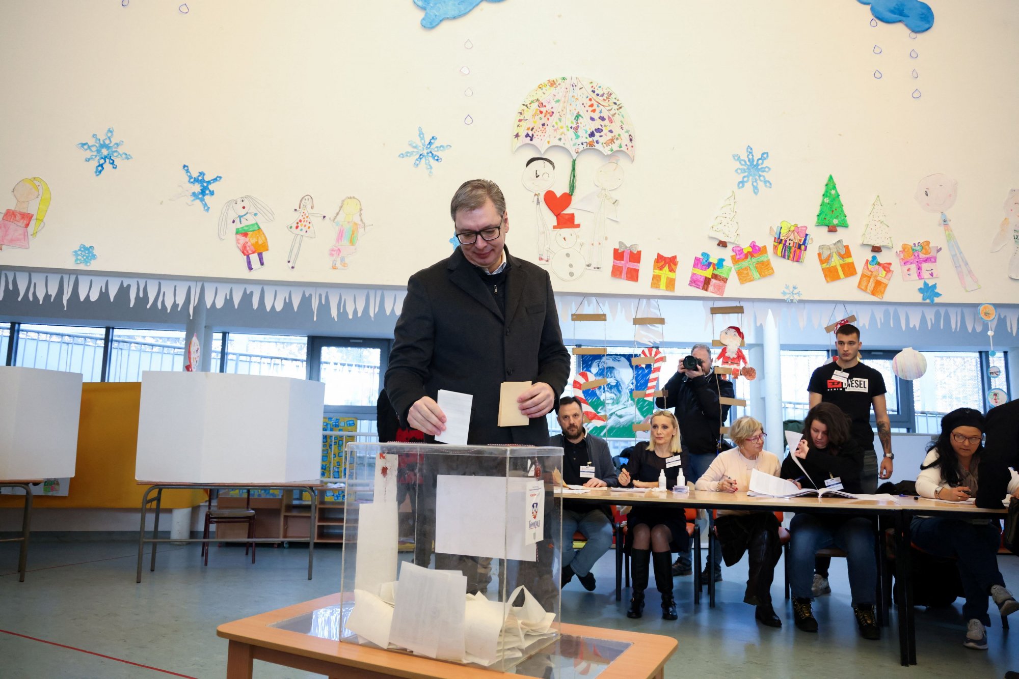 Ο πρόεδρος της Δημοκρατίας, Αλεξάνταρ Βούτσιτς, ασκεί το εκλογικό του δικαίωμα
