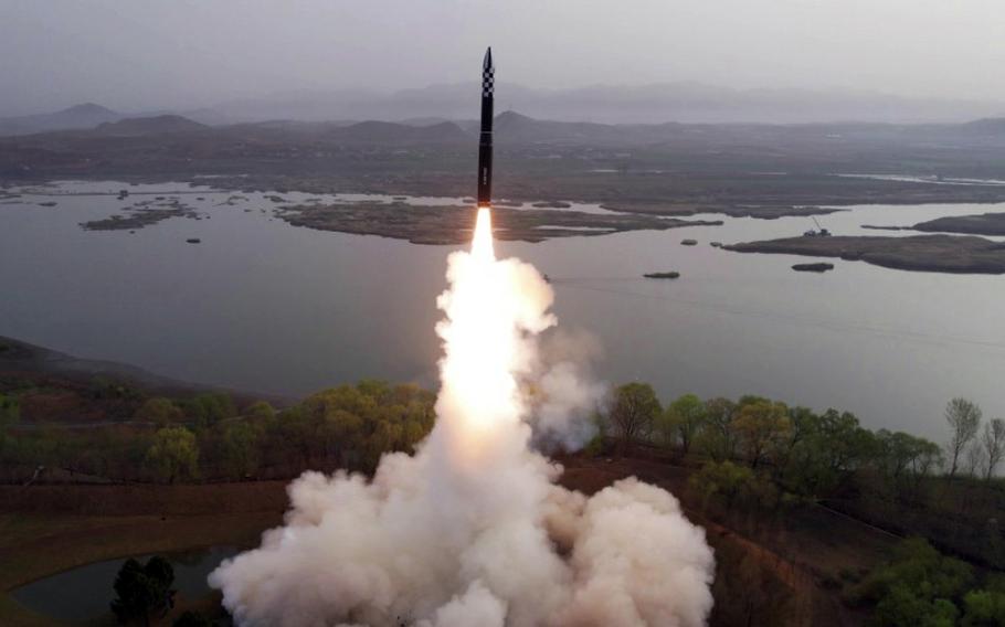 Το όπλο το οποίο εκτόξευσε νωρίτερα σήμερα η Βόρεια Κορέα πιθανόν ήταν διηπειρωτικός βαλλιστικός πύραυλος (ICBM) ικανός να διανύσει πάνω από 15.000 χιλιόμετρα και κατά συνέπεια να πλήξει οποιοδήποτε σημείο σε «όλη την επικράτεια των ΗΠΑ», εκτίμησε ανώτερος αξιωματούχος του ιαπωνικού υπουργείου Αμυνας (στη φωτογραφία, επάνω, ο διηπειρωτικός βαλλιστικός πύραυλος Hwasong-18 που εκτοξεύτηκε στις 13 Απριλίου 2023, σύμφωνα με το βορειοκορεατικό πρακτορείο ειδήσεων KCNA).