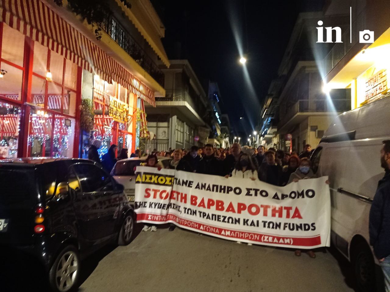Πολυπληθής πορεία διαμαρτυρίας για τους πλειστηριασμούς βρίσκεται σε εξέλιξη αυτή την ώρα στα Πετράλωνα.