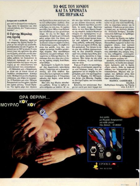 Το δημοσίευμα περιελάμβανε κατ’ αρχήν συνομιλίες του Γιάννη Μόραλη με τη Μαρίνα Λαμπράκη – Πλάκα, τότε καθηγήτρια Ιστορίας της Τέχνης στην Ανωτάτη Σχολή Καλών Τεχνών (ΑΣΚΤ).