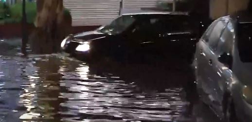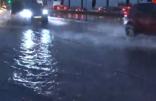Ενδεικτικό είναι ότι το ύψος του νερού ξεπερνάει το μαρσπιέ των πορτών των οχημάτων, με αποτέλεσμα στη δεξιά λωρίδα να μπορούν να κινηθούν μόνο τα ψηλά οχήματα.