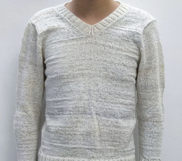 Το πουλόβερ που έπλεξαν οι ερευνητές αποτελείται από ίνες «αερογέλης», ένα είδος αφρώδους υλικού που κατακρατά μεγάλες ποσότητες αέρα.
