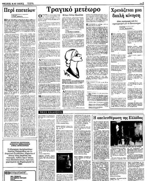 *Άρθρο του αειμνήστου Μάριου Πλωρίτη για την Ελένη Παπαδάκη, που έφερε τον τίτλο «Τραγικό μετέωρο» και είχε δημοσιευτεί στην εφημερίδα «Το Βήμα» την Πρωτοχρονιά του 1984.