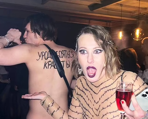 Η 40χρονη Ξένια Σόμπτσακ, η οποία είναι έγκυος και το τελευταίο διάστημα έχει ασκήσει δριμεία κριτική στον Πούτιν για τον πόλεμο στην Ουκρανία, εμφανίστηκε στο πάρτι με ένα σι θρου φόρεμα και χωρίς σουτιέν.