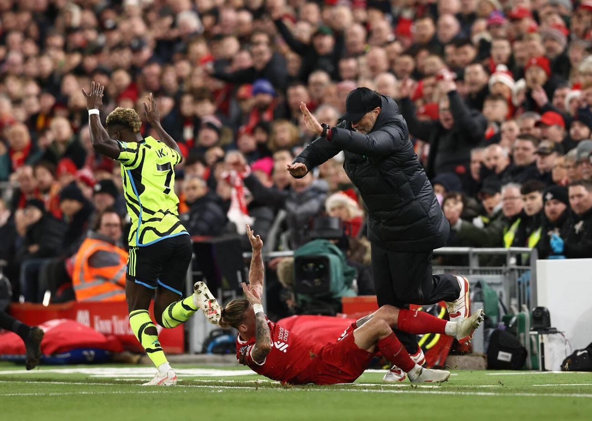 Kostas Tsimikas is in hospital with a suspected collarbone injury after wiping out Jurgen Klopp 🤯 pic.twitter.com/BiR1jPzNmm