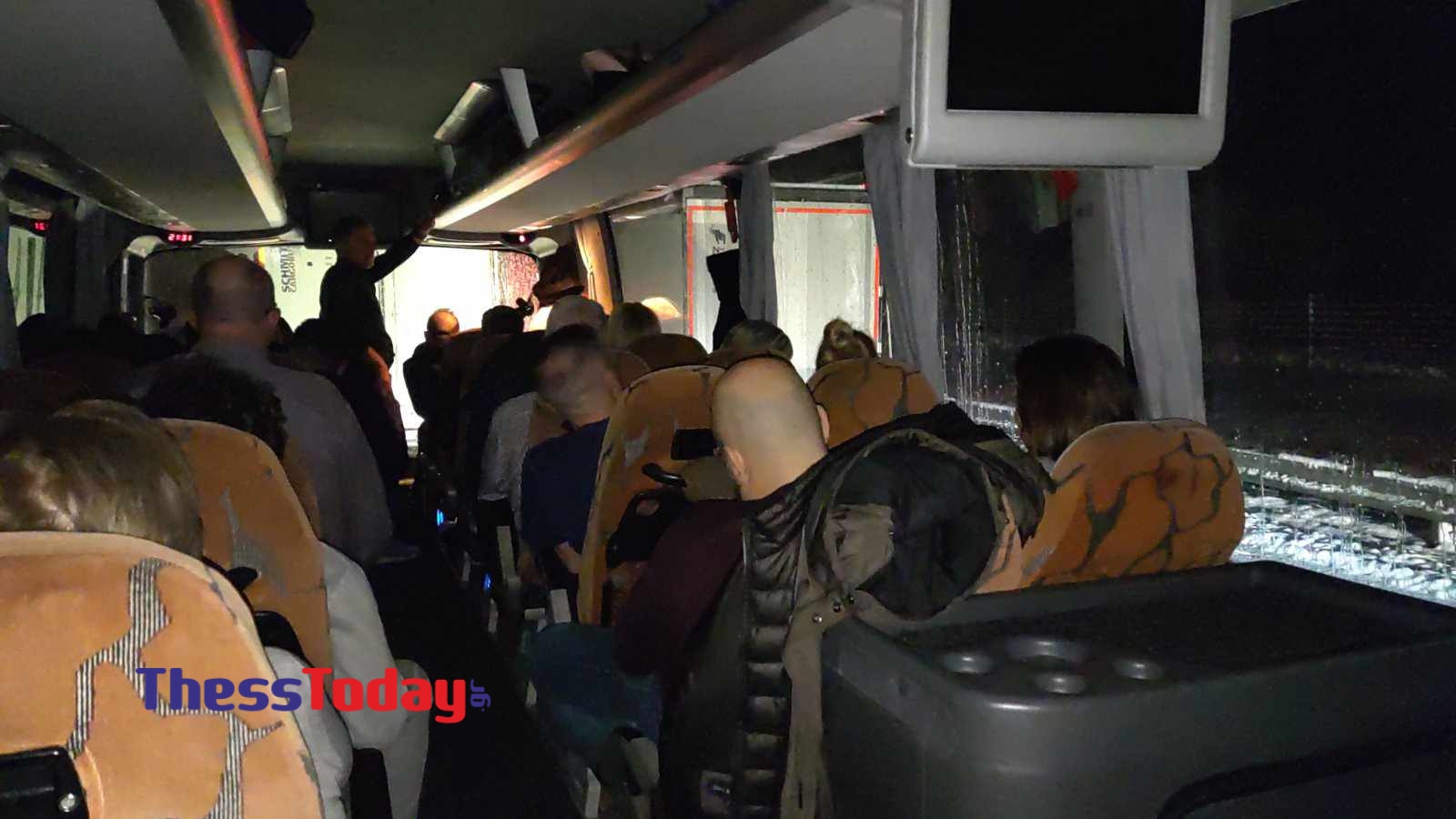«Έχουμε μεγάλη ανάγκη για ξηρά τροφή και νερό. Έχουμε μείνει χωρίς νερό. Έχουμε οκτάχρονα παιδιά στο λεωφορείο, πρέπει να μας βοηθήσει κάποιος, όσο περνούν οι ώρες η κατάσταση γίνεται ολοένα και πιο δραματική. Πρέπει οι ηλικιωμένοι να πάρουν τα φάρμακά τους», αναφέρει στο ThessToday.gr επιβάτης, ο οποίος εξηγεί ότι ενημερώθηκε η Πρεσβεία, ωστόσο τους απάντησαν ότι δεν μπορούν να κάνουν κάτι περισσότερο καθώς οι επιχειρήσεις απεγκλωβισμού γίνονται προς πολίτες όλων των χωρών χωρίς διακρίσεις.
