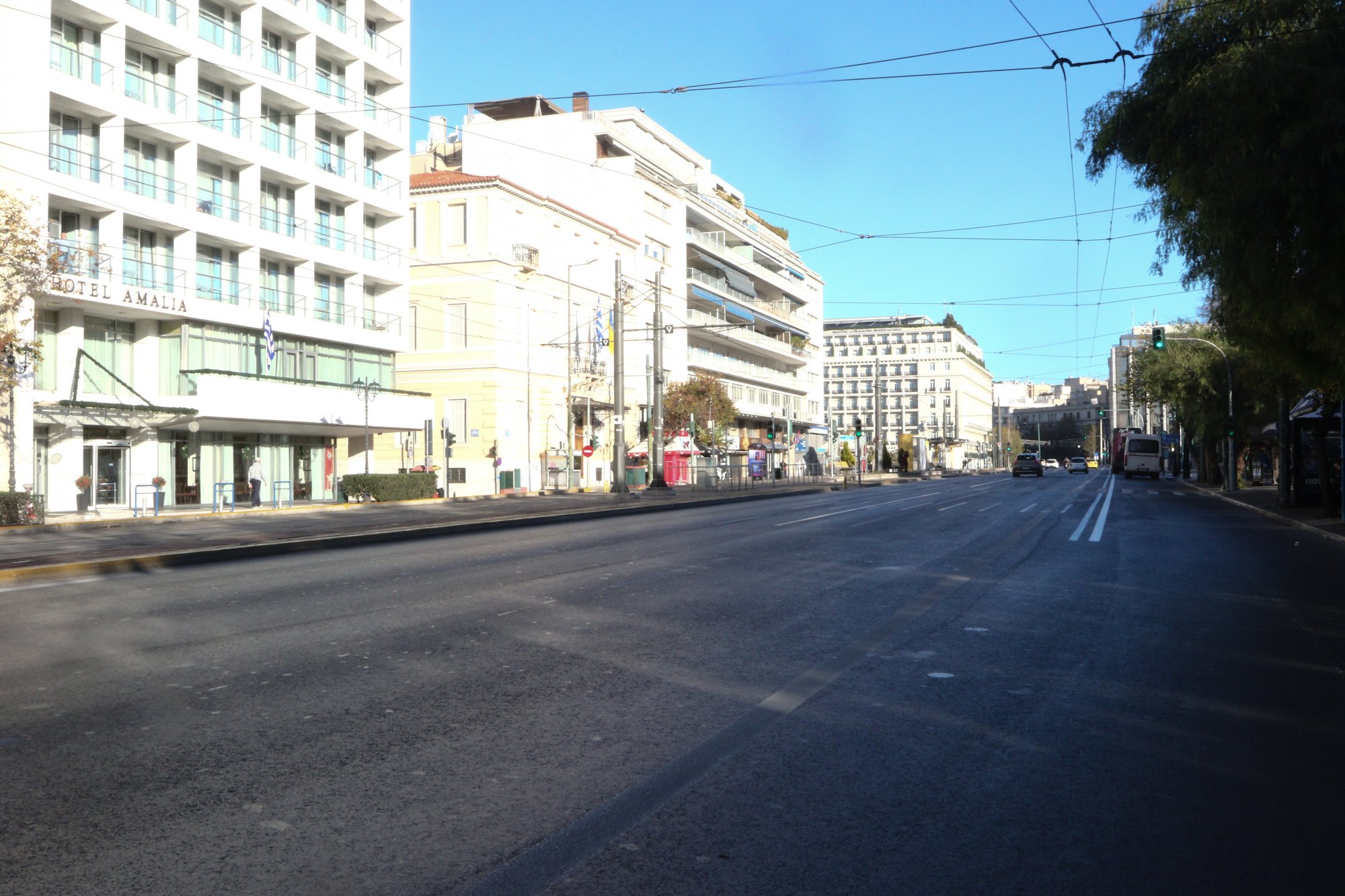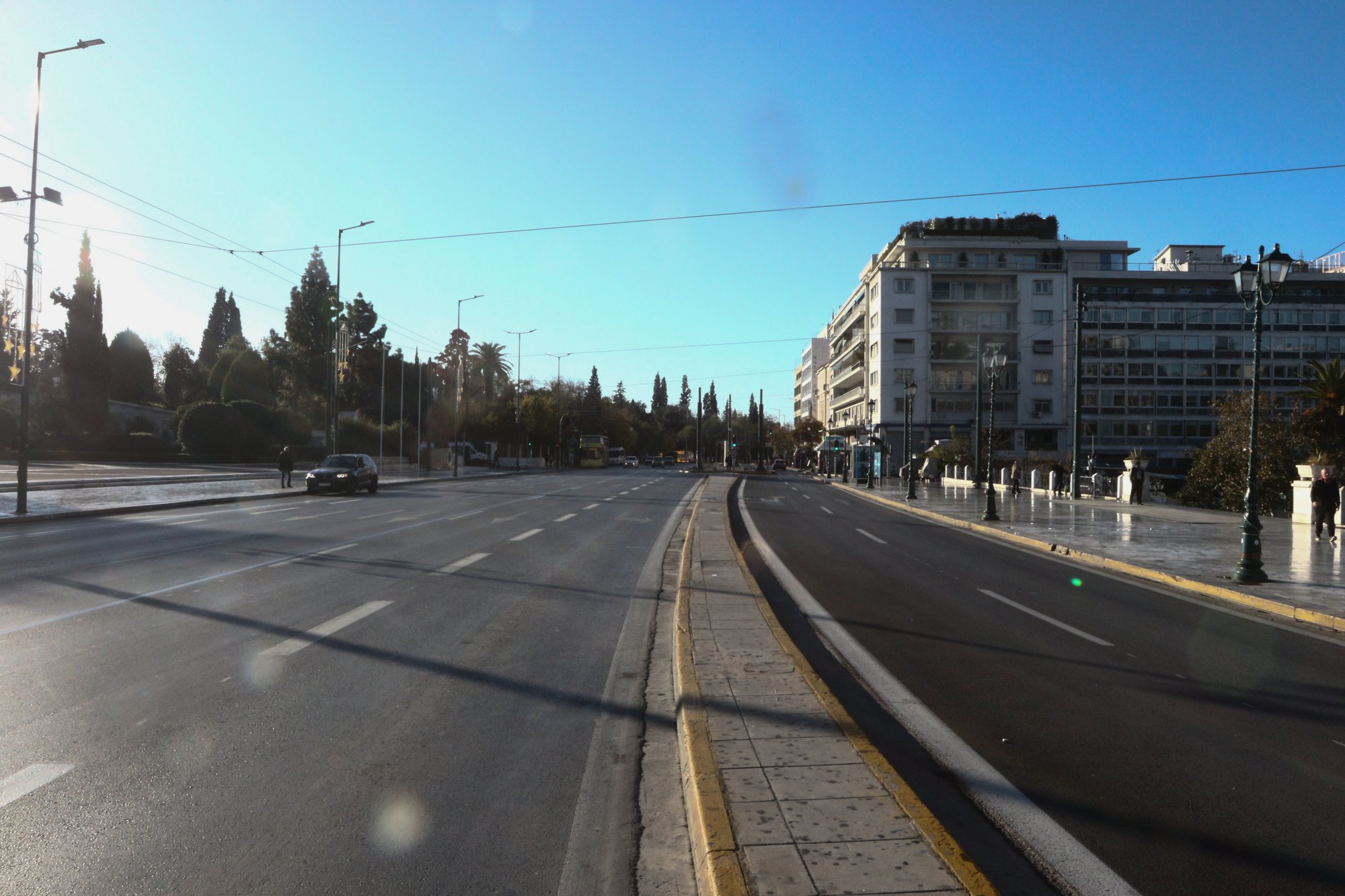 Οι άδειοι δρόμοι της πρωτεύουσας, προκαλούν εντύπωση σε συνδυασμό με τον ηλιόλουστο καιρό που μόνο… Χριστούγεννα δεν θυμίζει.