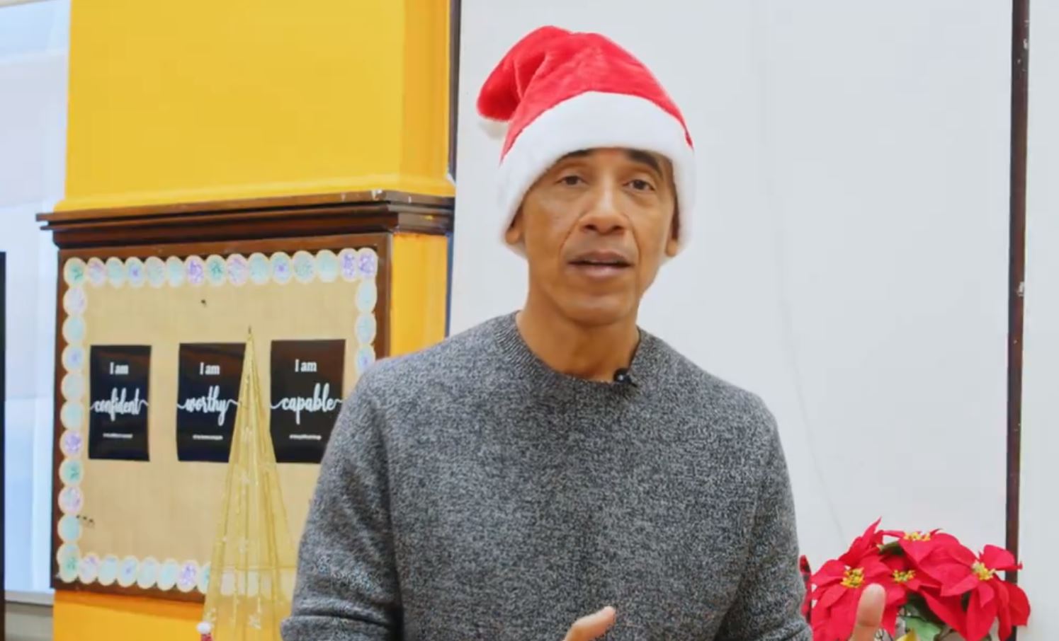 Φορώντας έναν αγιοβασιλιάτικο σκούφο, ο πρώην πρόεδρος των ΗΠΑ, στο σύντομο μήνυμά του για τις γιορτές, τονίζει την ανάγκη της προσφοράς στην εποχή που ζούμε.