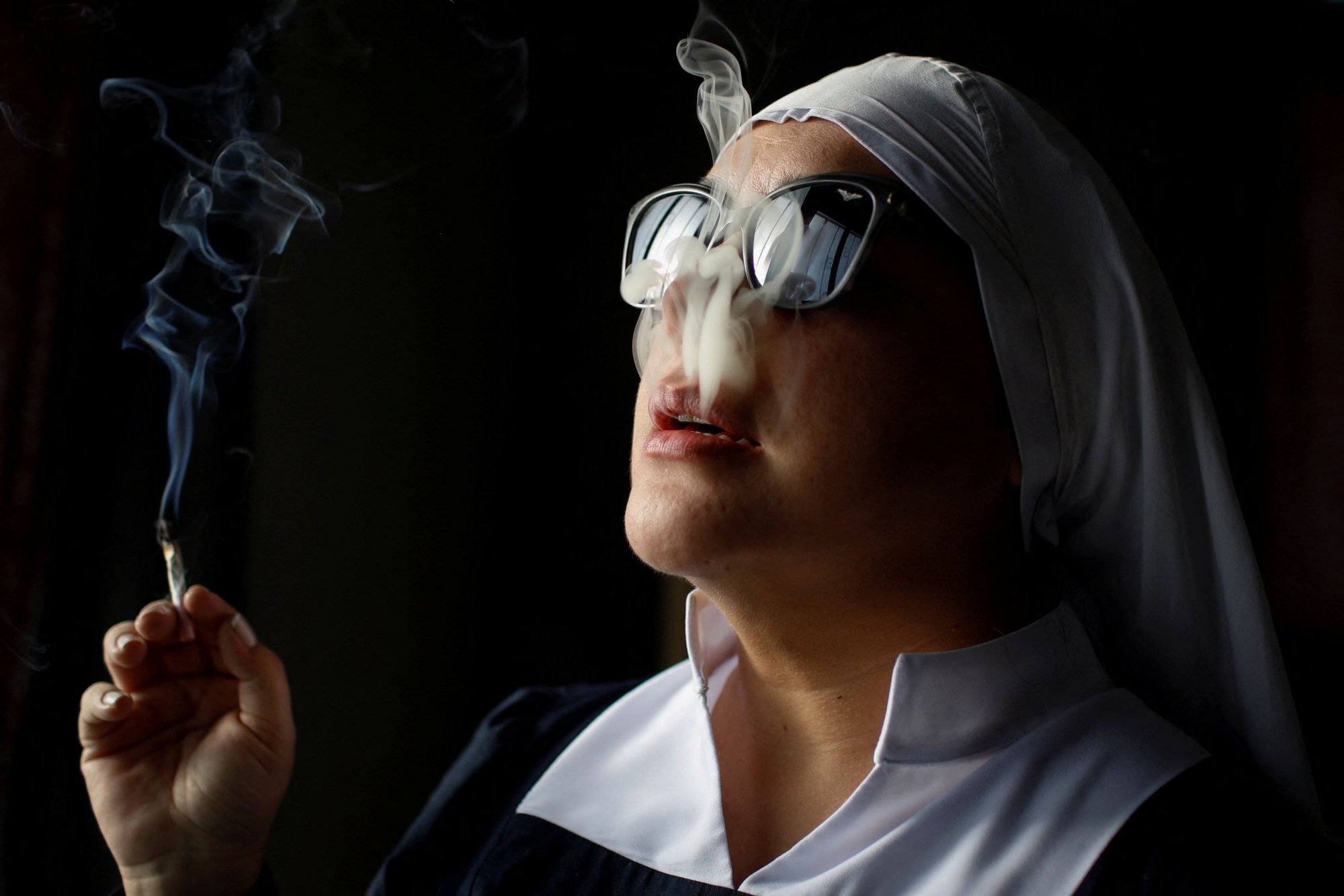 Η Αδελφή Κίκα και η Αδελφή Μπερναντέτ επιδεικνύουν τις χαλαρωτικές ιδιότητες της κάνναβης (Reuters)